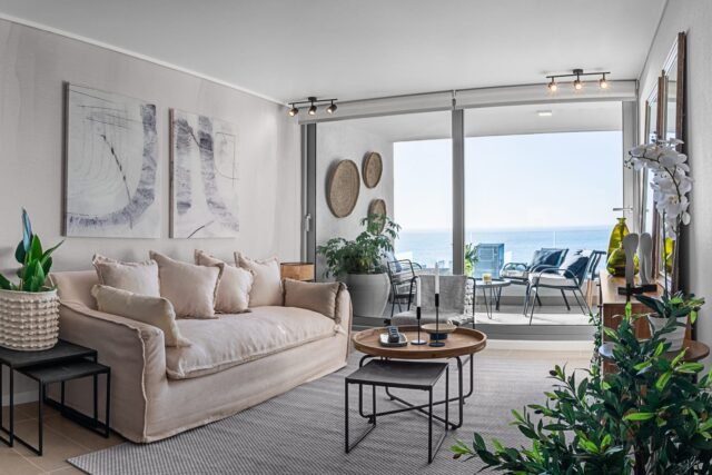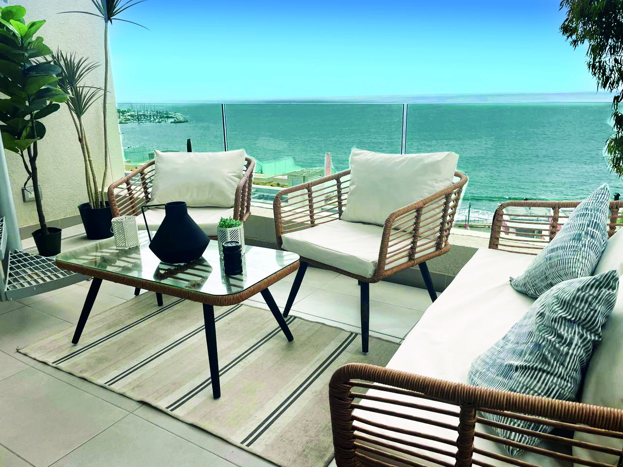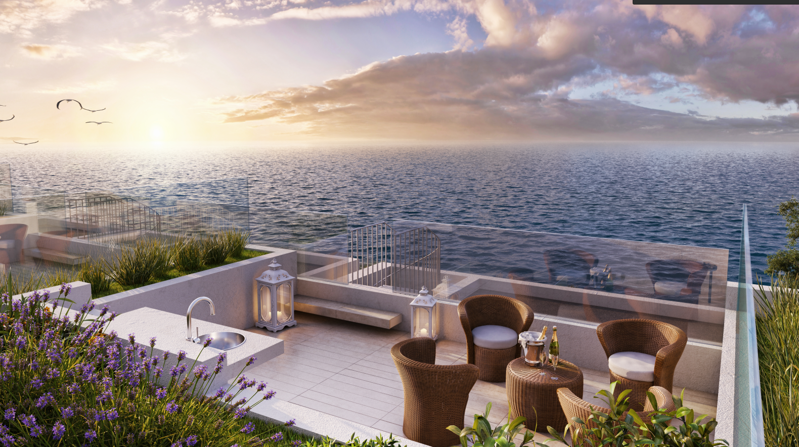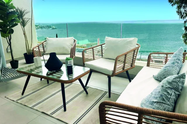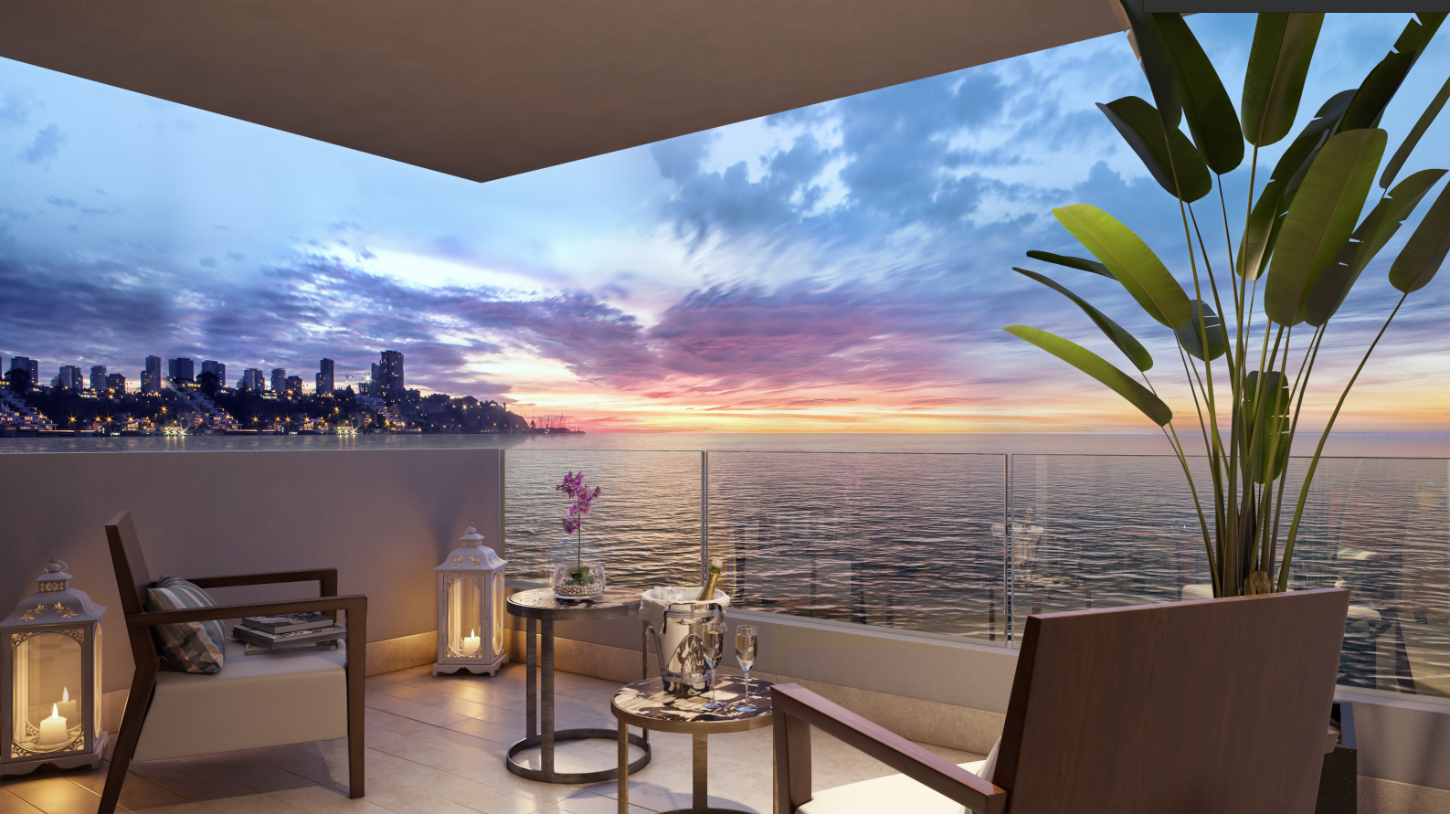 - Vistas Infinitas: Terrazas con baranda de cristal para que nada se interponga entre tú y el mar.