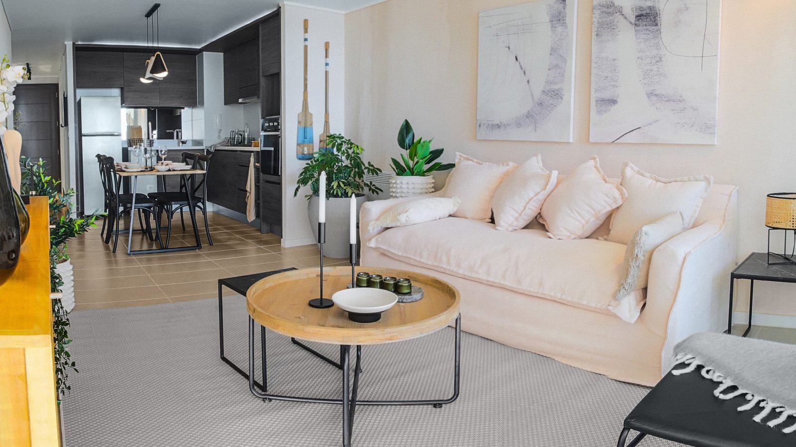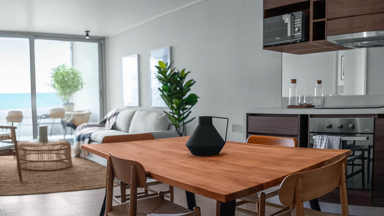 - Materialidad Noble: Piso Gres Porcelánico de alta resistencia, ventanas de PVC Termopanel (aislación total frente al viento marino) y cubiertas de granito en cocina.