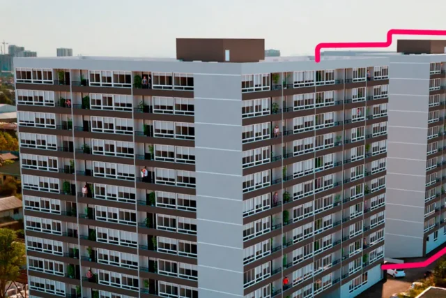 - Escala: 299 unidades totales con 4 ascensores de alta capacidad.